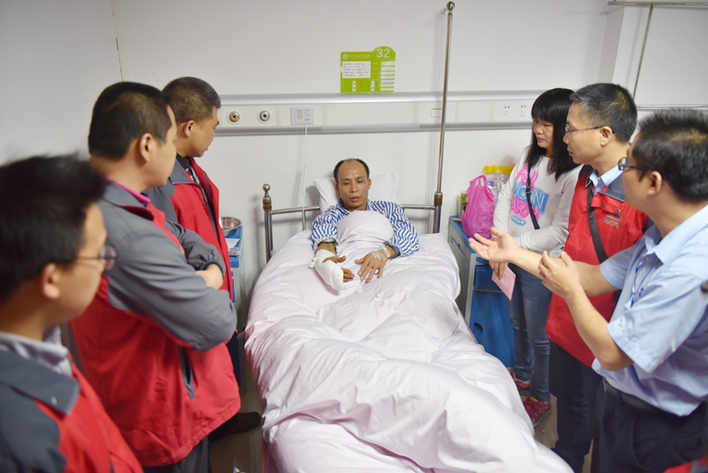 集团讯 祸患无情,人间有爱。12月22号下午,yp刮刮卡集团员工李秀礼因工作意外受伤入住医院,集团事业三部、集团行政部员工们纷纷到医院慰问。